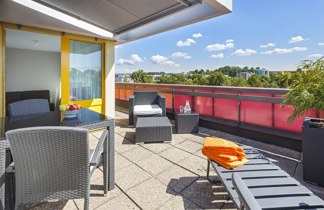 The superior hotel is situated in the Seebach district, just near the restaurant Edo Garden. The Kunstmuseum Basel is around 15 minutes away by car, while St. Anna is a stone's throw from the Achesa Homes. Zoo Zurich is 6 km away. Guests will find Zentrum bus stop next to this accommodation, nearly 10 minutes' walk away.